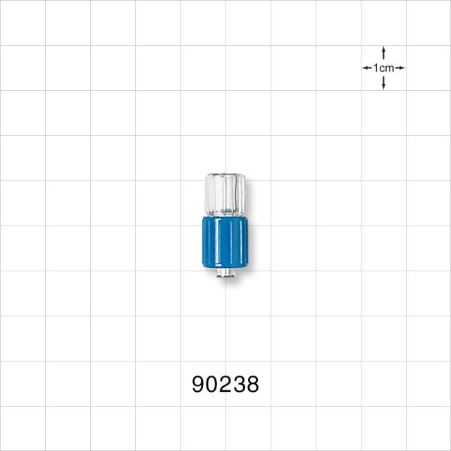 Male Luer w/Blue Spin Lock, Tubing Port, Clear