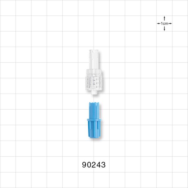 Male Luer w/Spin Lock, Tubing Port, Clear w/Blue Vented Cap